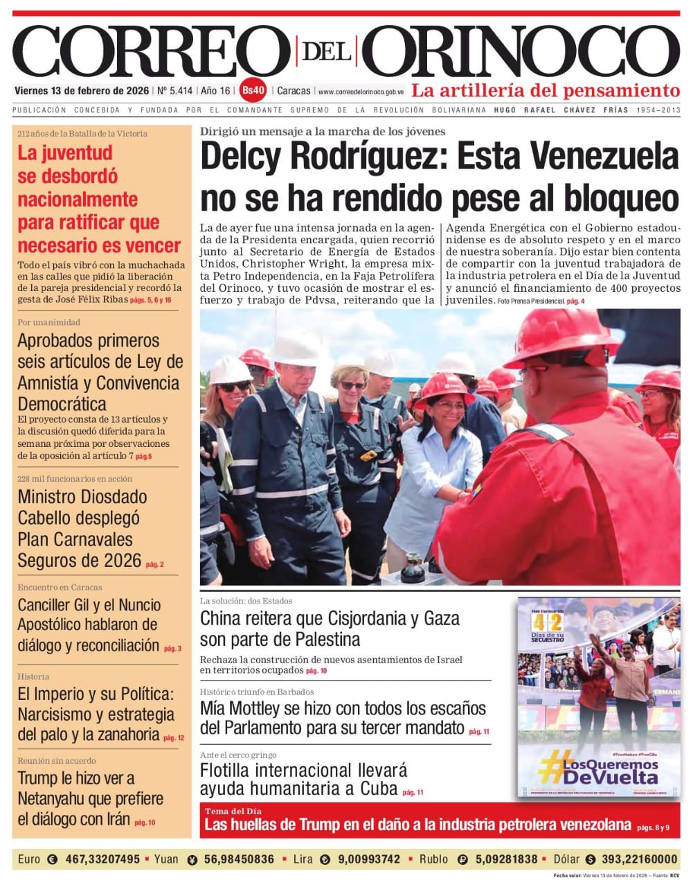 Edición Impresa Correo del Orinoco N° 5.414 Viernes 13 de febrero de 2026