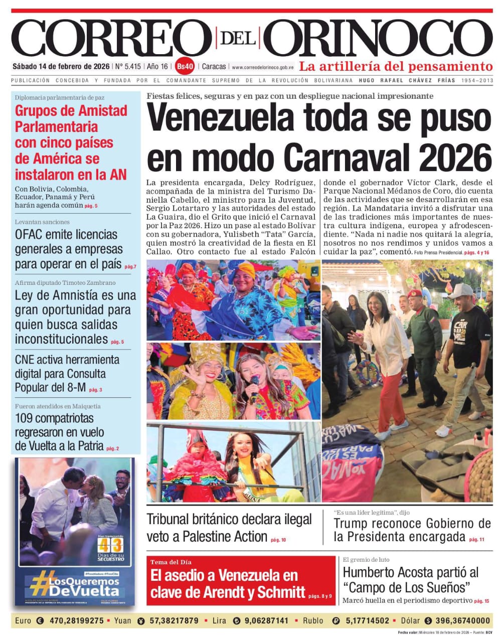 Edición Impresa Correo del Orinoco N° 5.415 Sábado 14 de febrero de 2026