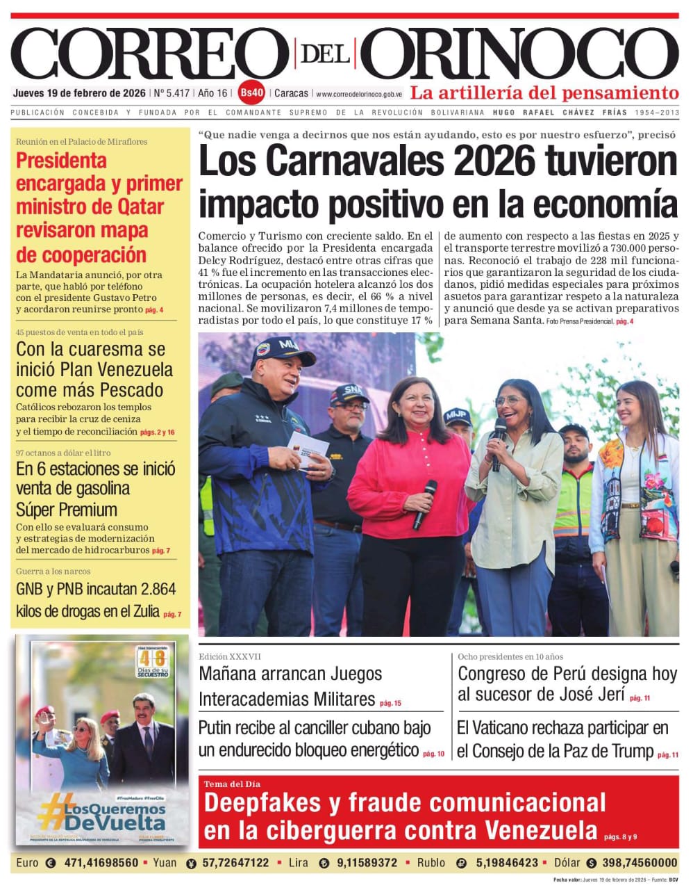 Edición Impresa Correo del Orinoco N° 5.417 Jueves 19 de febrero de 2026