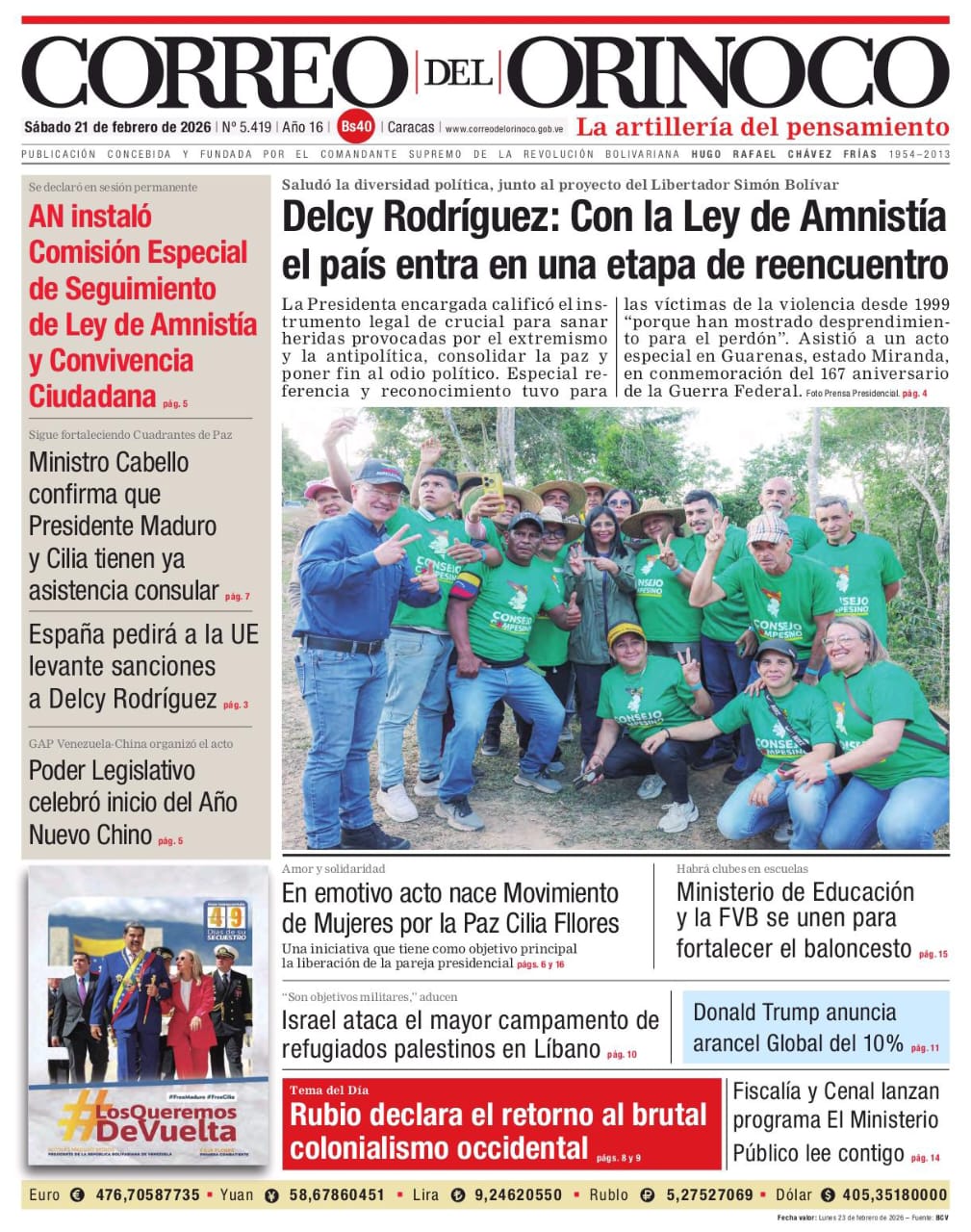 Edición Impresa Correo del Orinoco N° 5.419 Sábado 21 de febrero de 2026