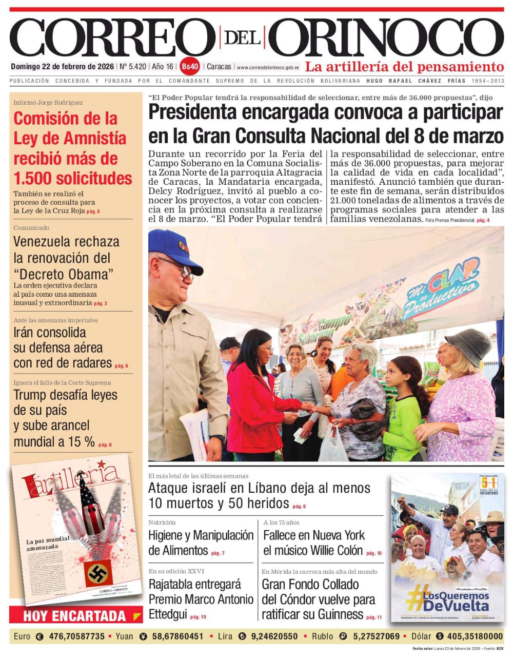 Edición Impresa Correo del Orinoco N° 5.420 Domingo 22 de febrero de 2026