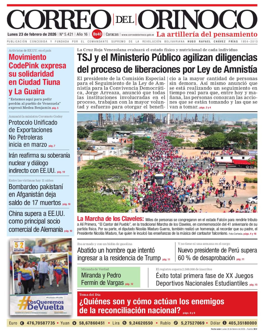 Edición Impresa Correo del Orinoco N° 5.421 Lunes 23 de febrero de 2026