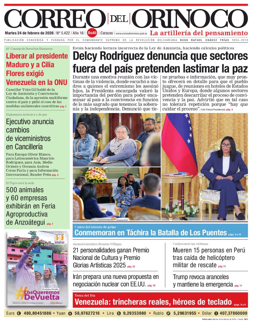 Edición Impresa Correo del Orinoco N° 5.422 Martes 24 de febrero de 2026