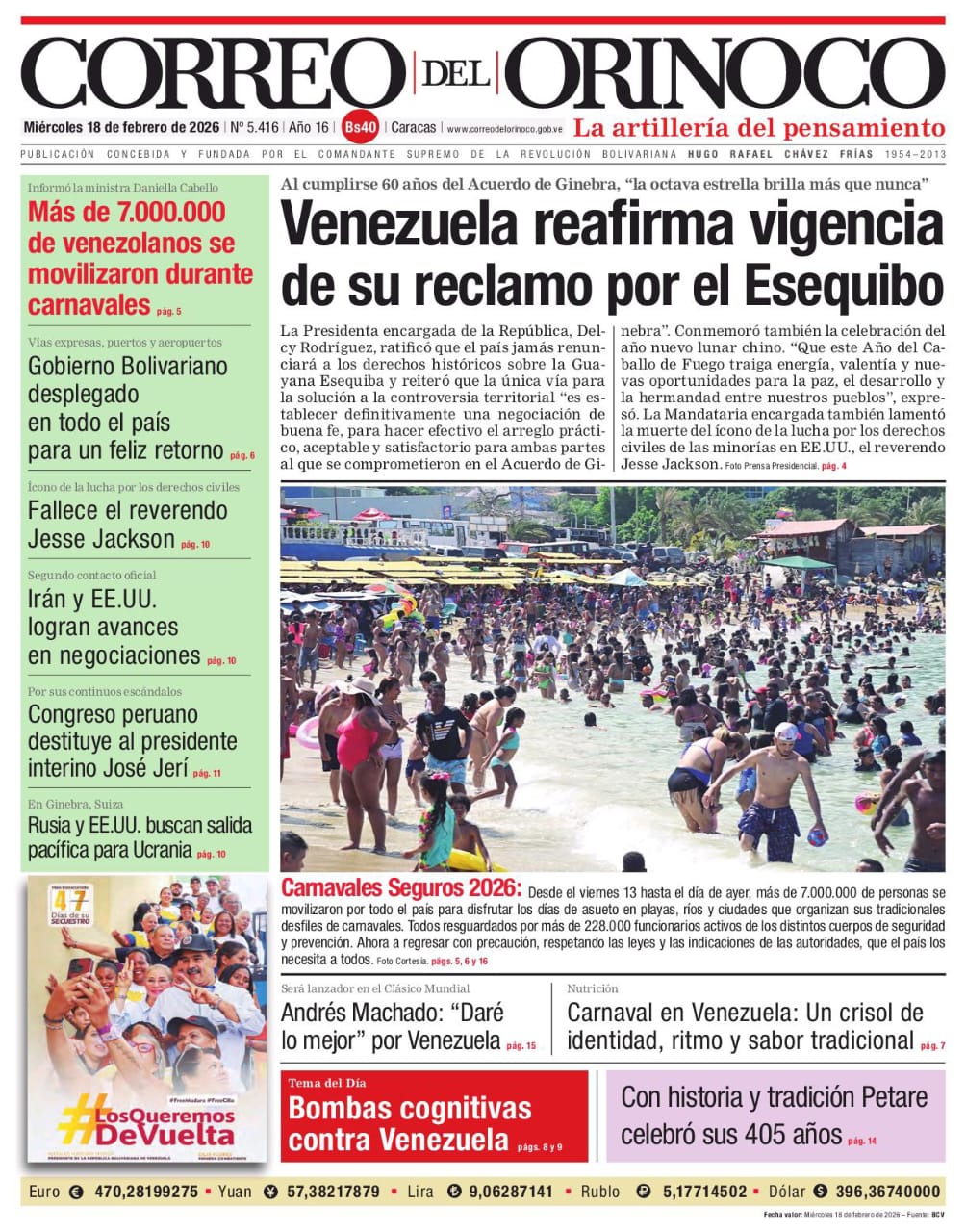 Edición Impresa Correo del Orinoco N° 5.416 Miércoles 18 de febrero de 2026
