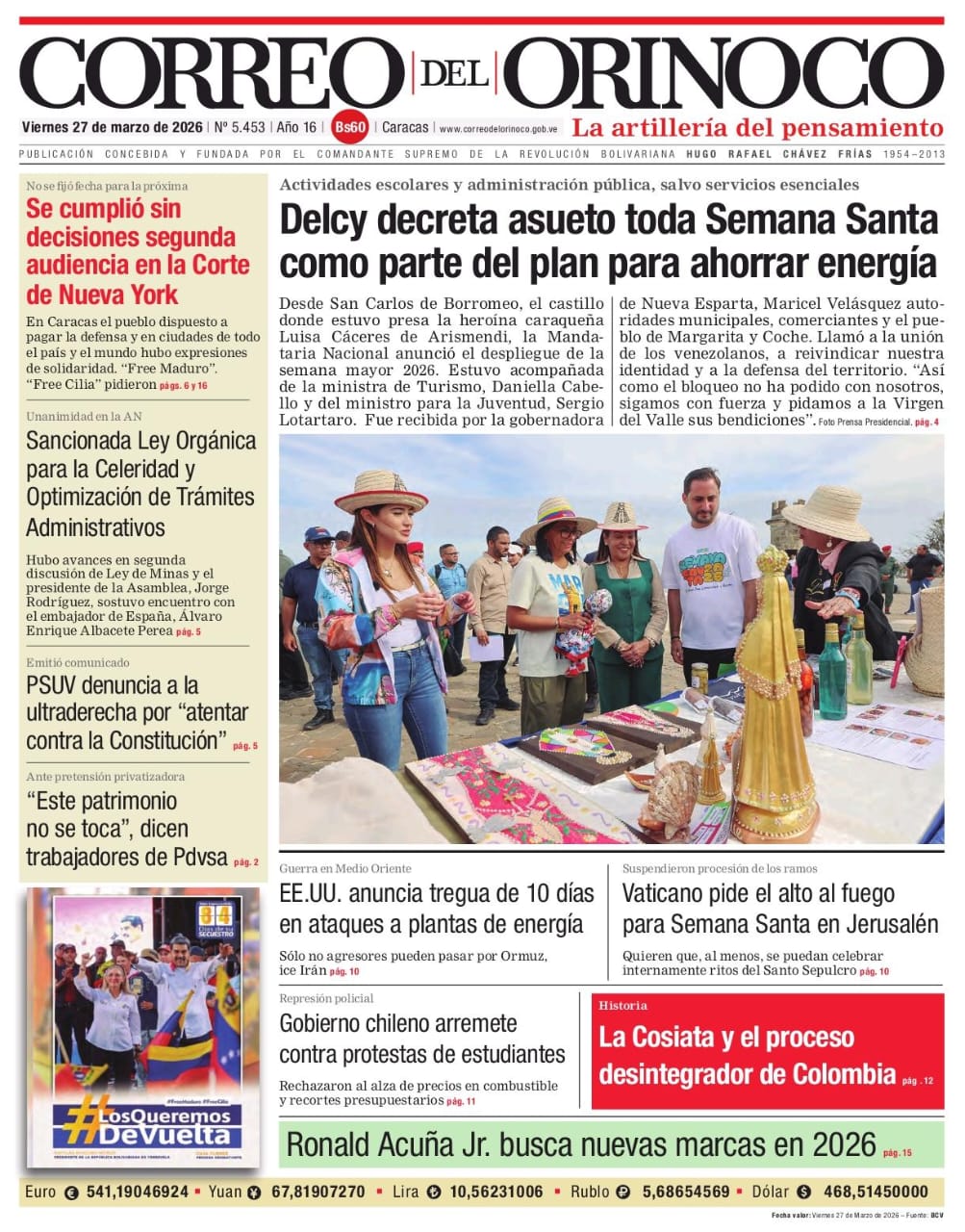 Edición Impresa Correo del Orinoco N° 5.453 Viernes 27 de marzo de 2026
