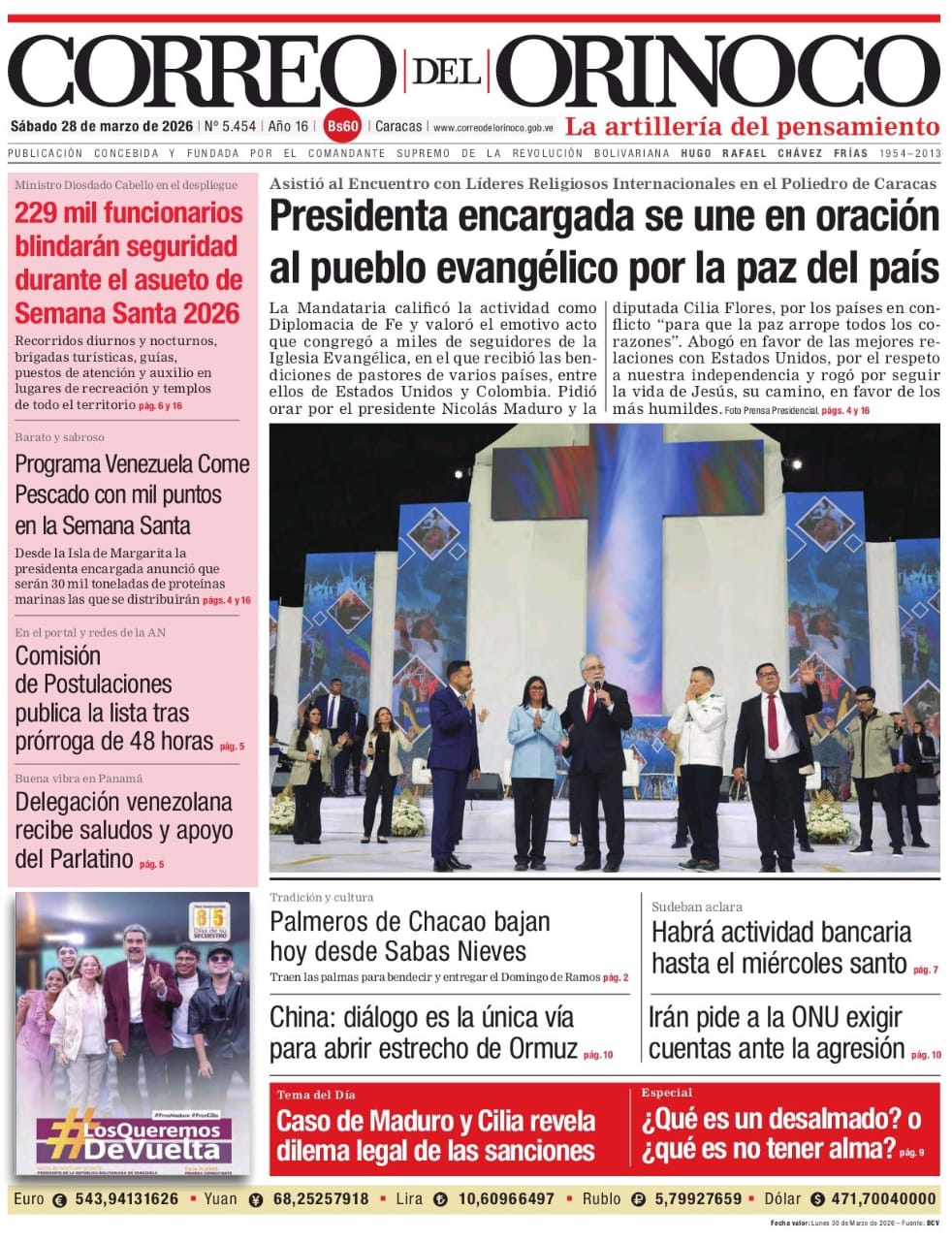 Edición Impresa Correo del Orinoco N° 5.454 Sábado 28 de marzo de 2026
