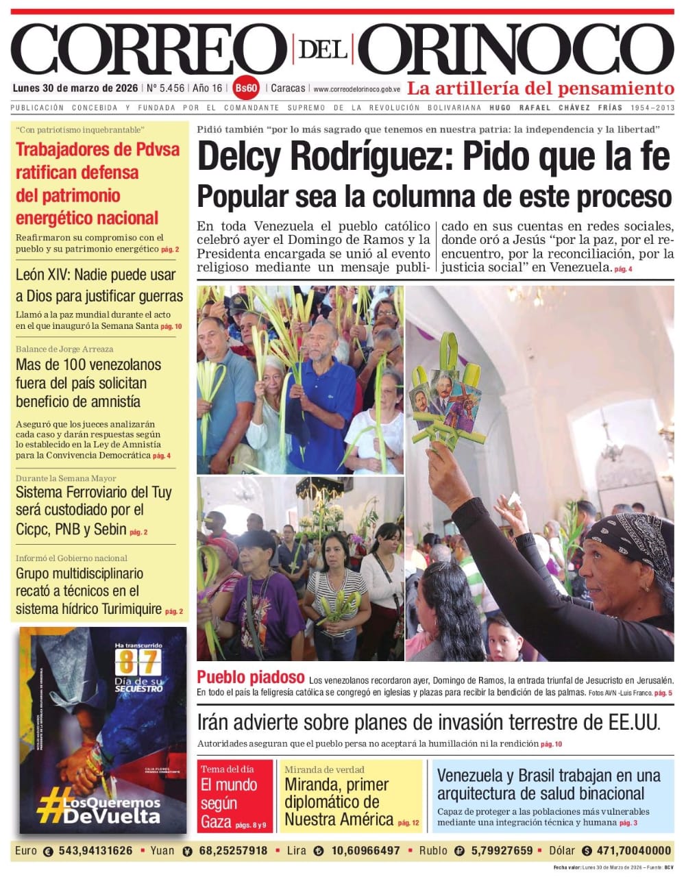 Edición Impresa Correo del Orinoco N° 5.456 Lunes 30 de marzo de 2026