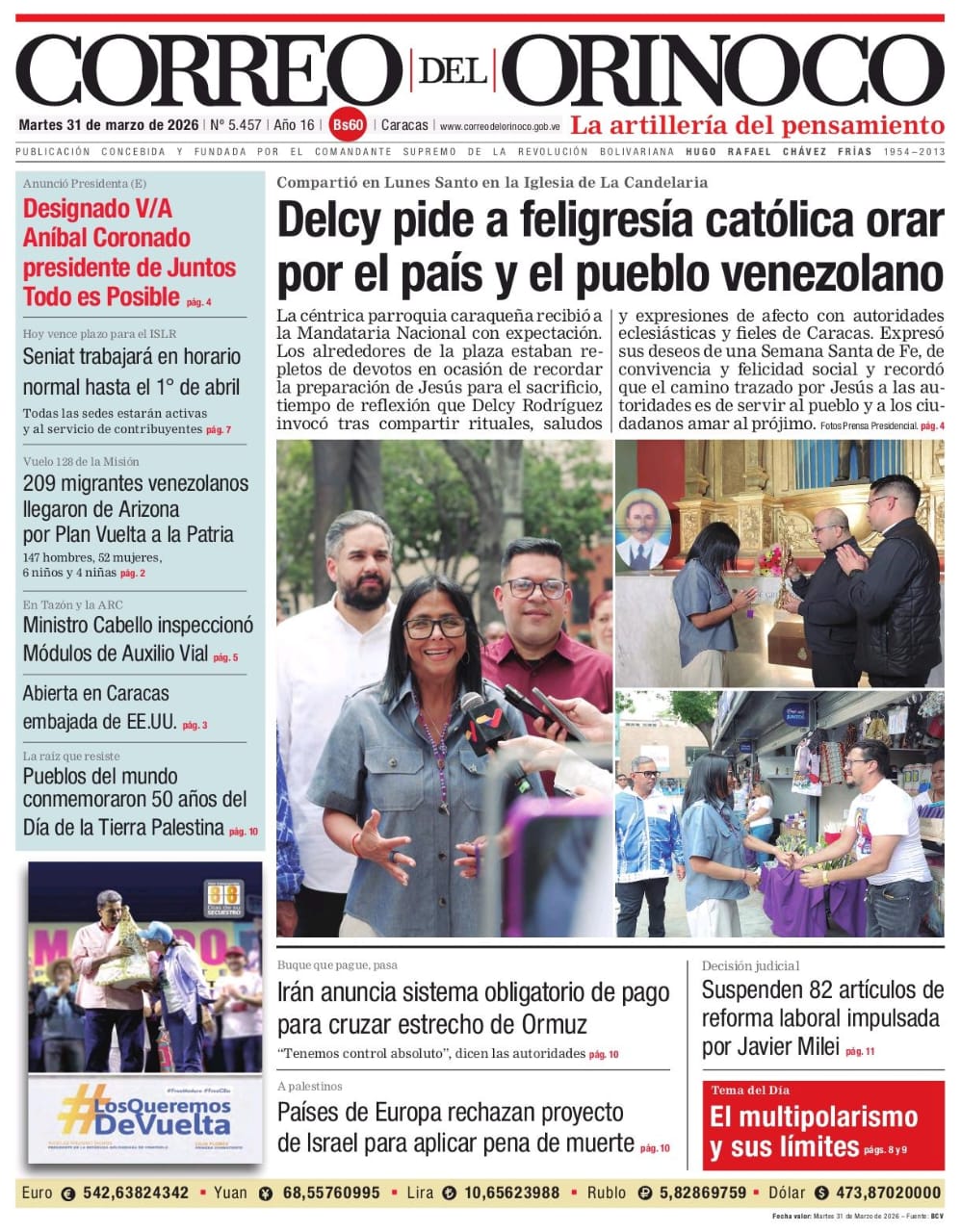 Edición Impresa Correo del Orinoco N° 5.457 Martes 31 de marzo de 2026