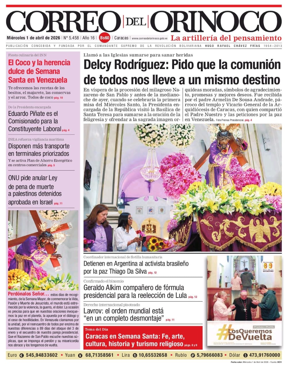 Edición Impresa Correo del Orinoco N° 5.458 Miércoles 1 de abril de 2026