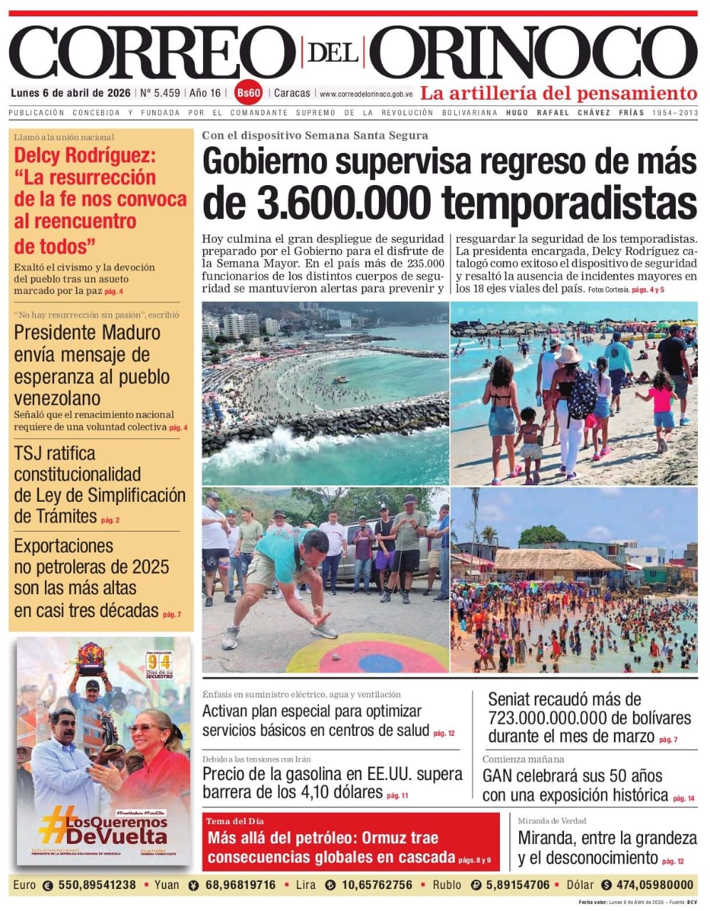 Edición Impresa Correo del Orinoco N° 5.459 Lunes 6 de abril de 2026