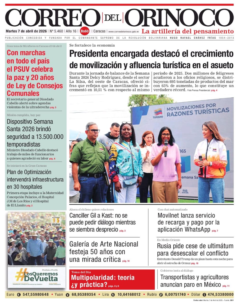 Edición Impresa Correo del Orinoco N° 5.460 Martes 7 de abril de 2026