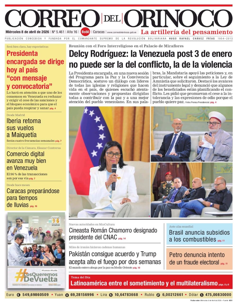 Edición Impresa Correo del Orinoco N° 5.461 Miércoles 8 de abril de 2026
