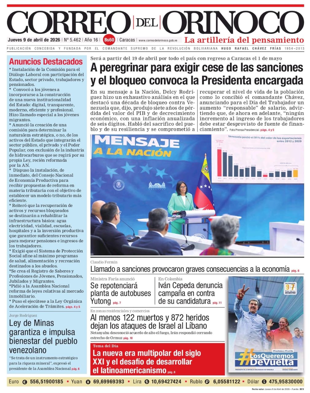Edición Impresa Correo del Orinoco N° 5.462 Jueves 9 de abril de 2026