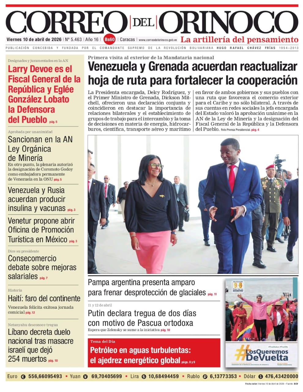 Edición Impresa Correo del Orinoco N° 5.463 Viernes 10 de abril de 2026