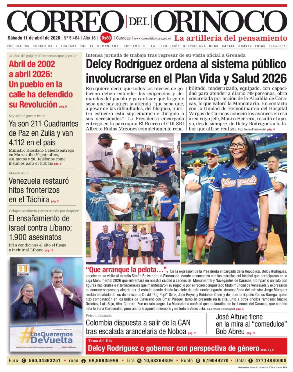Edición Impresa Correo del Orinoco N° 5.464 Sábado 11 de abril de 2026