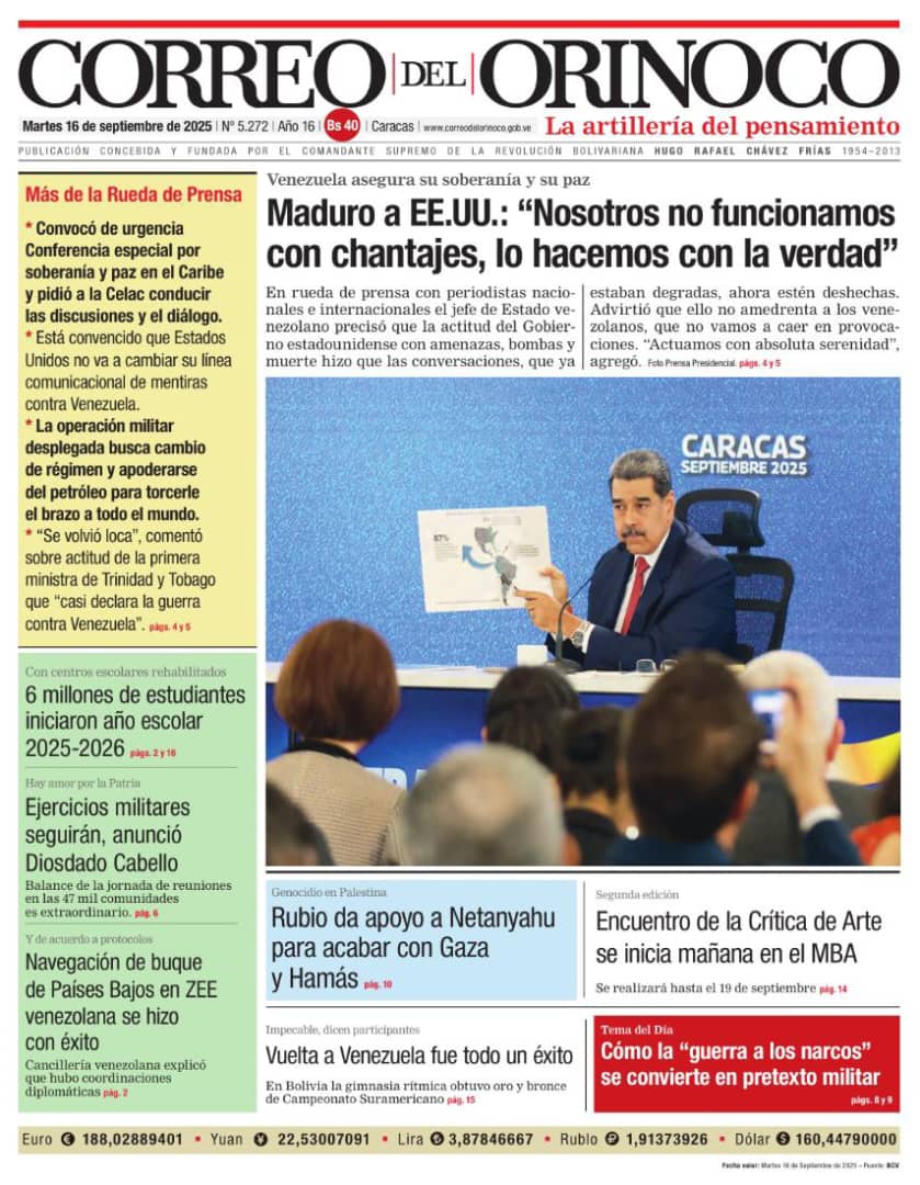 Edición Impresa Correo del Orinoco N° 5.272 Martes 16 de septiembre de 2025