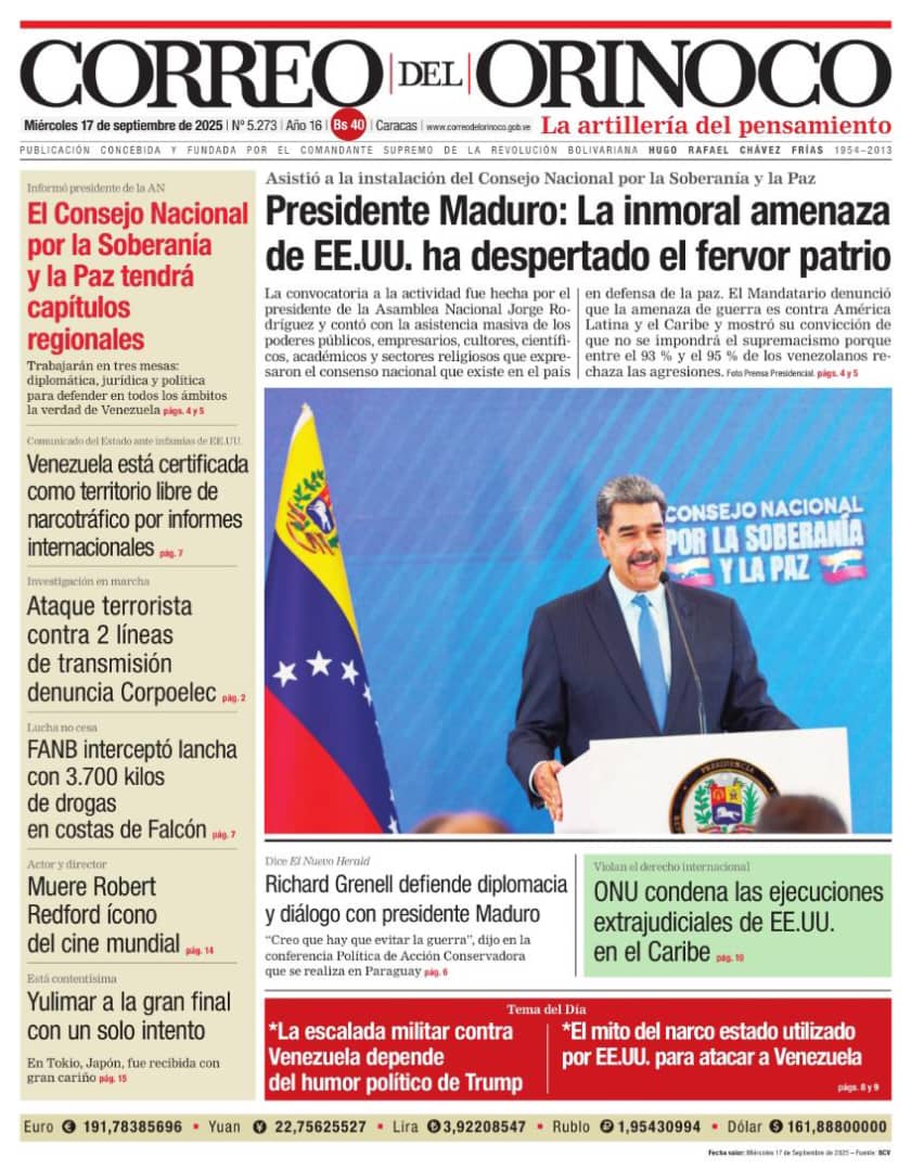 Edición Impresa Correo del Orinoco N° 5.273 Miércoles 17 de septiembre de 2025