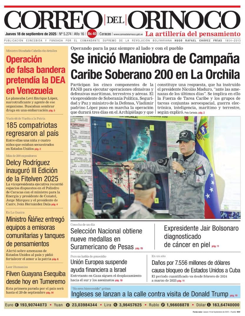 Edición Impresa Correo del Orinoco N° 5.274 Jueves 18 de septiembre de 2025