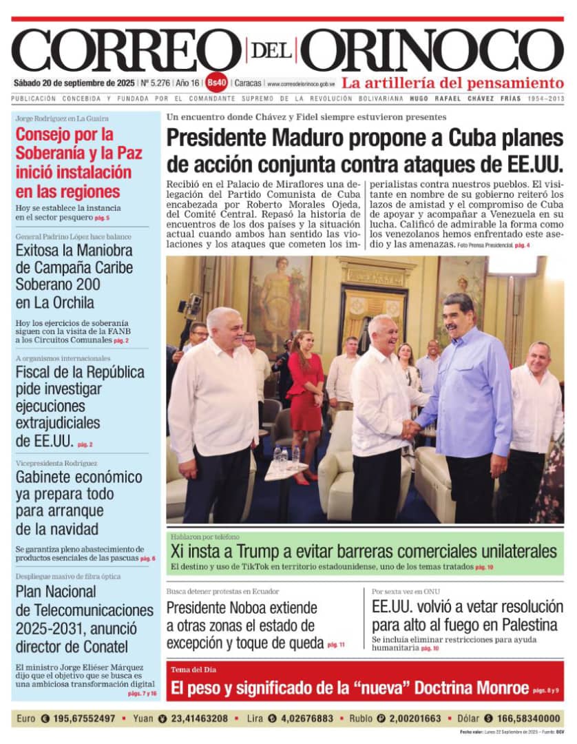 Edición Impresa Correo del Orinoco N° 5.276 Sábado 20 de septiembre de 2025