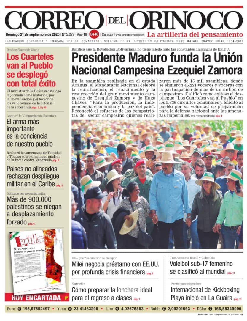 Edición Impresa Correo del Orinoco N° 5.277 Domingo 21 de septiembre de 2025