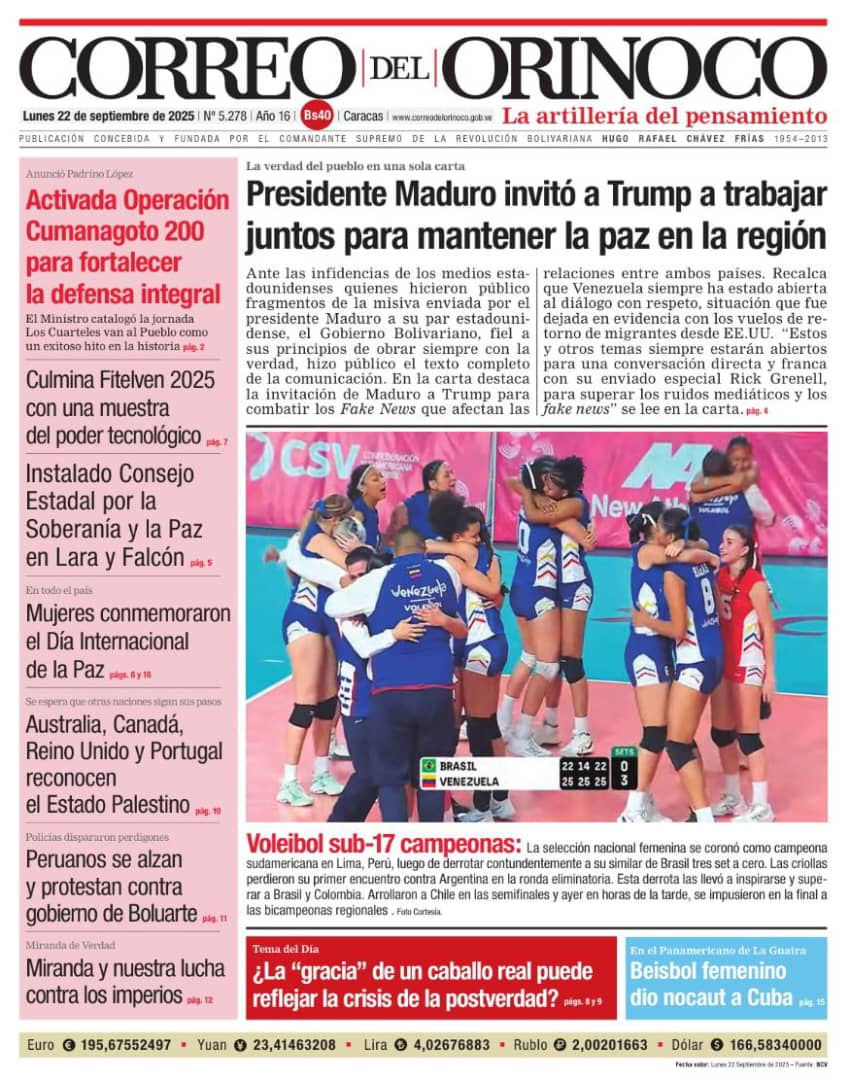 Edición Impresa Correo del Orinoco N° 5.278 Lunes 22 de septiembre de 2025