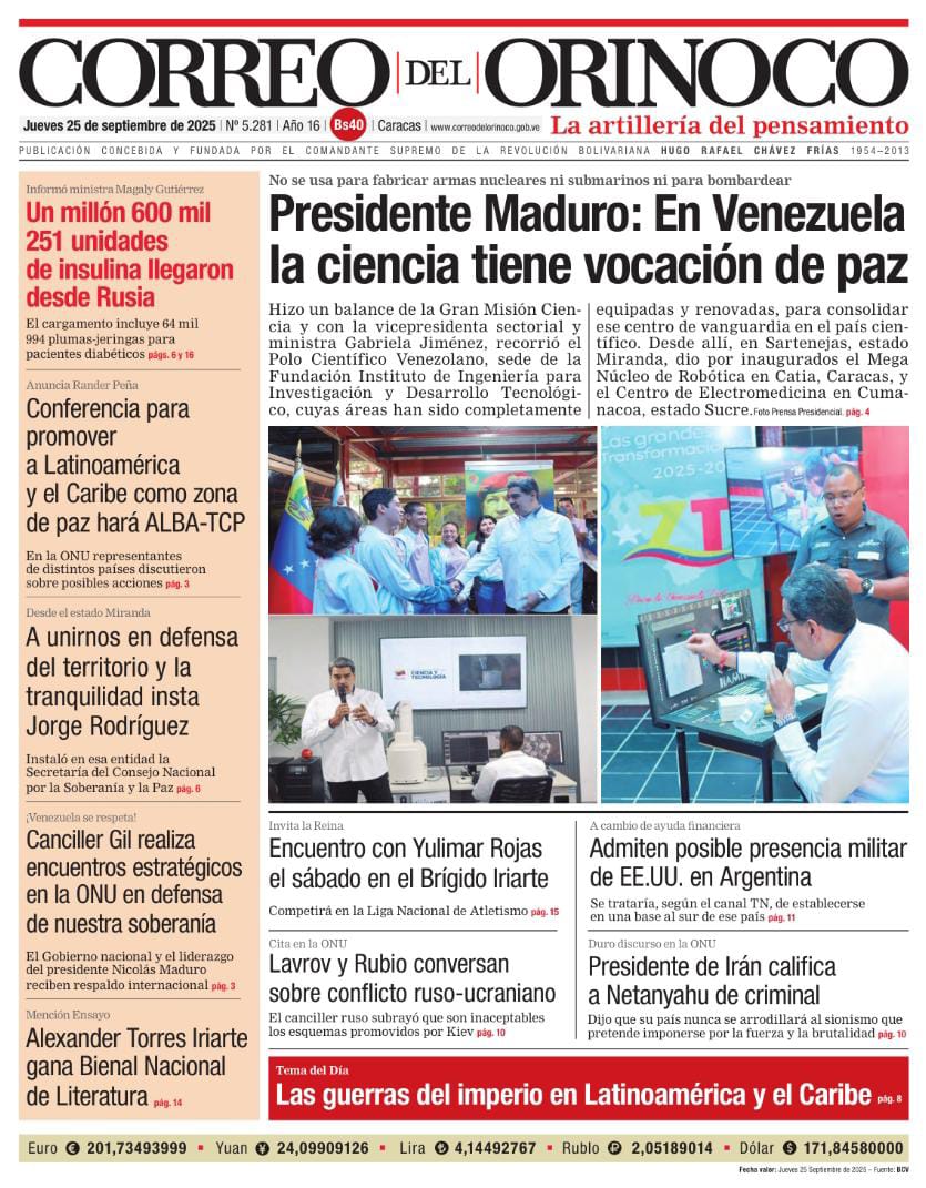 Edición Impresa Correo del Orinoco N° 5.281 Jueves 25 de septiembre de 2025