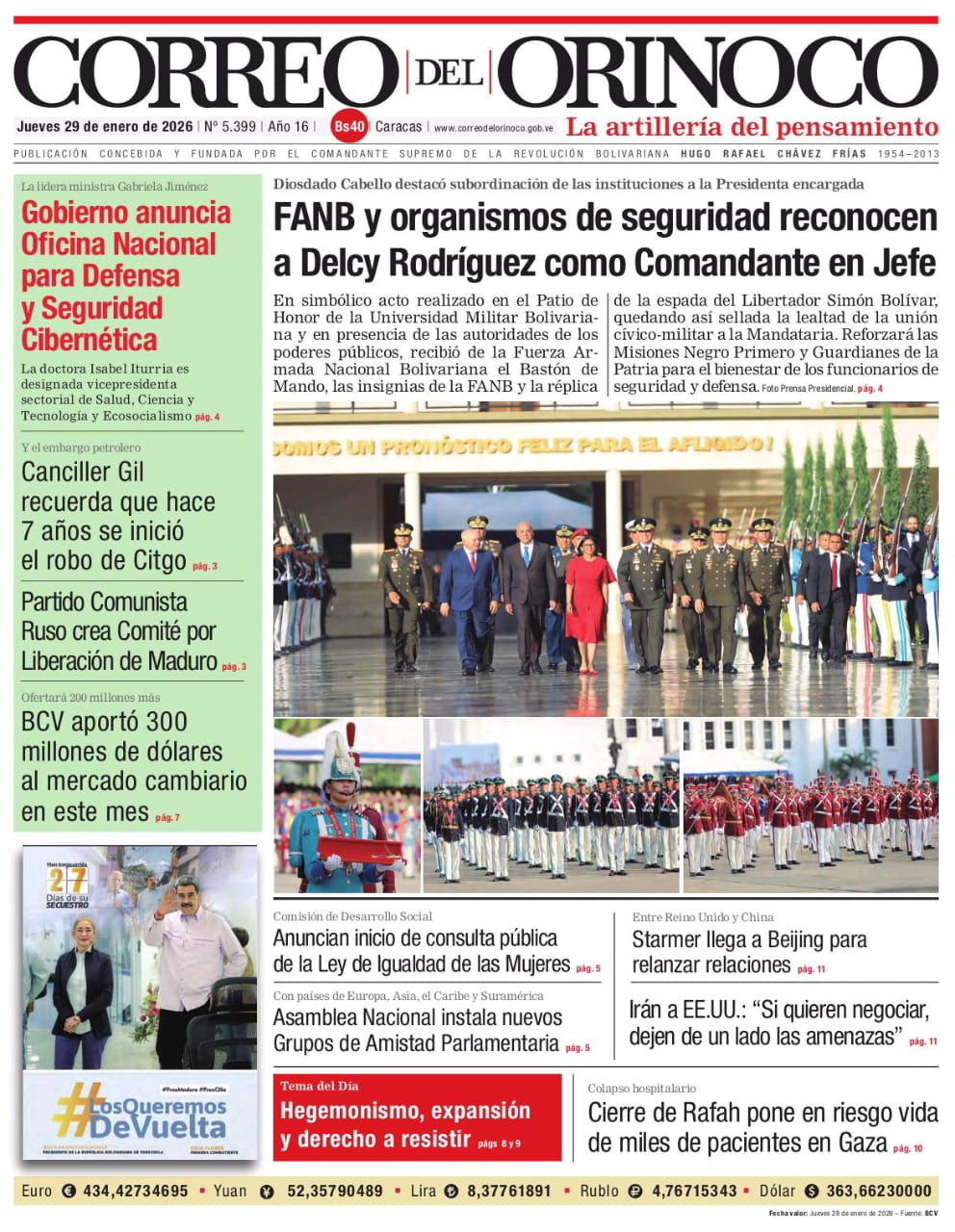 Edición Impresa Correo del Orinoco N° 5.399 Jueves 29 de enero de 2026