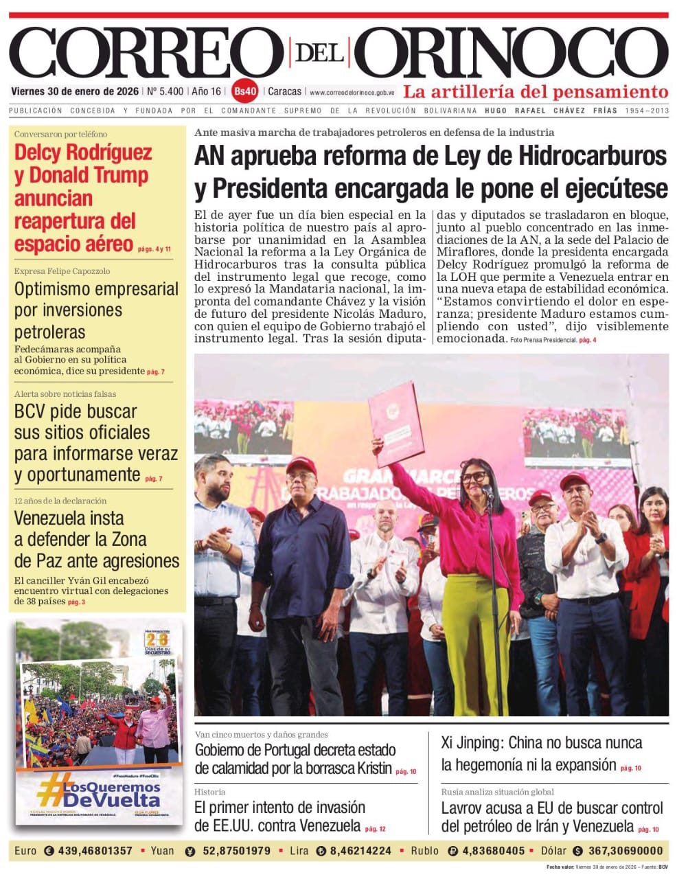 Edición Impresa Correo del Orinoco N° 5.400 Viernes 30 de enero de 2026