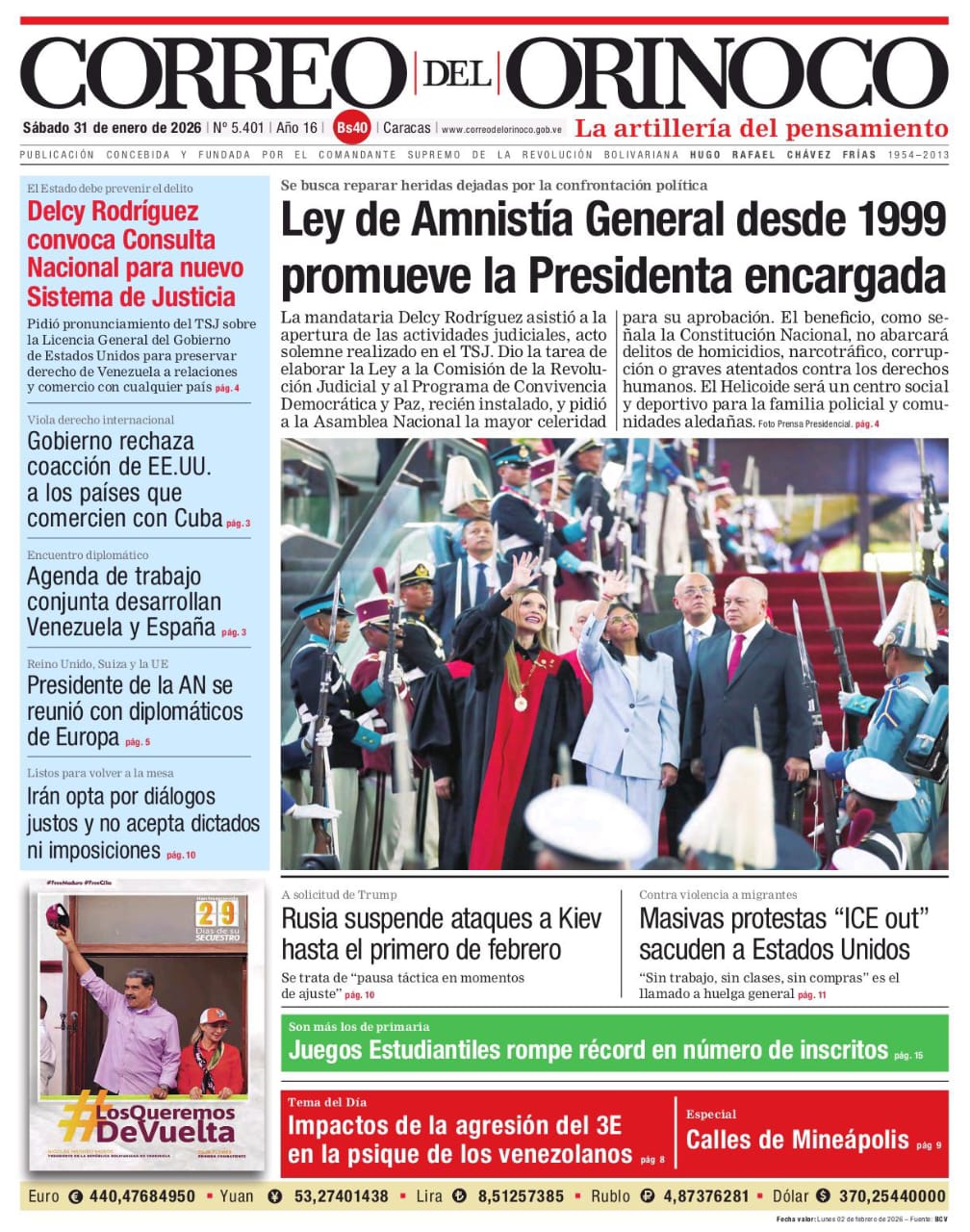 Edición Impresa Correo del Orinoco N° 5.401 Sábado 31 de enero de 2026