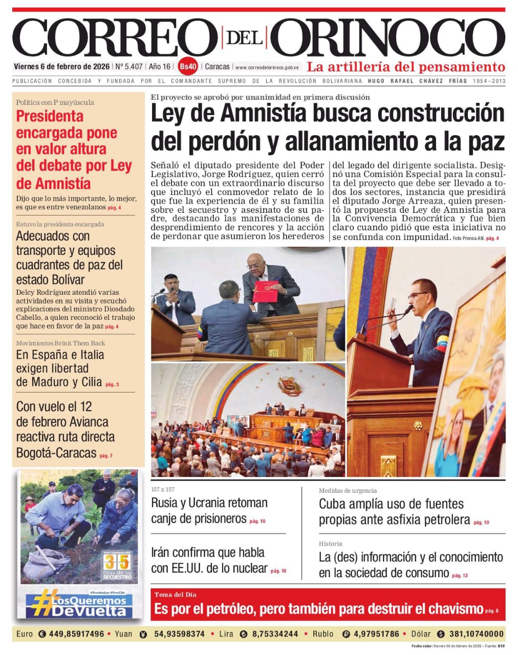 Edición Impresa Correo del Orinoco N° 5.407 Viernes 6 de febrero de 2026