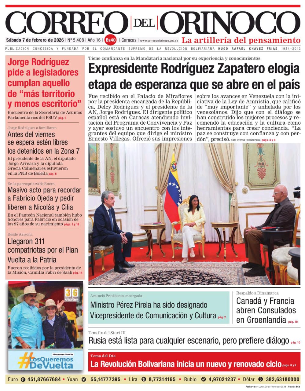 Edición Impresa Correo del Orinoco N° 5.408 Sábado 7 de febrero de 2026