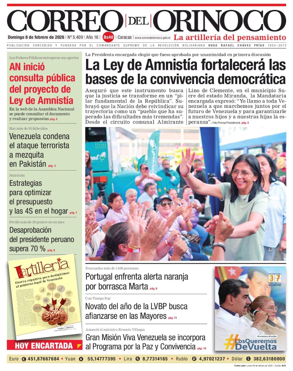 Edición Impresa Correo del Orinoco N° 5.409 Domingo 8 de febrero de 2026