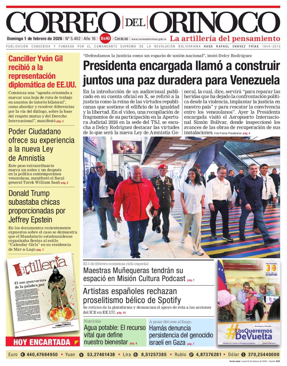 Edición Impresa Correo del Orinoco N° 5.402 Domingo 1 de febrero de 2026