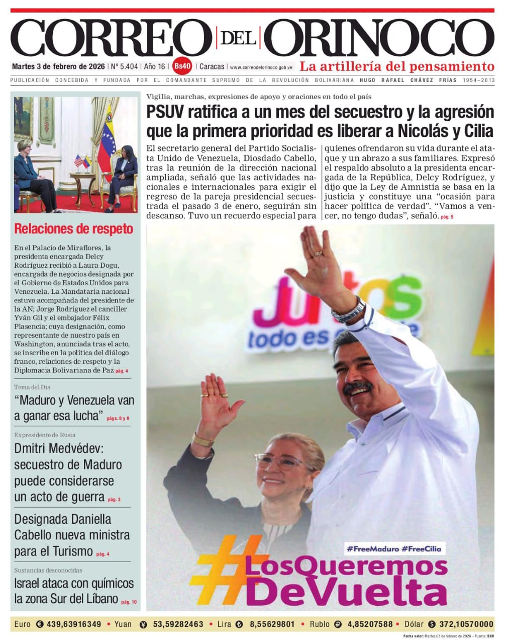 Edición Impresa Correo del Orinoco N° 5.404 Martes 3 de febrero de 2026