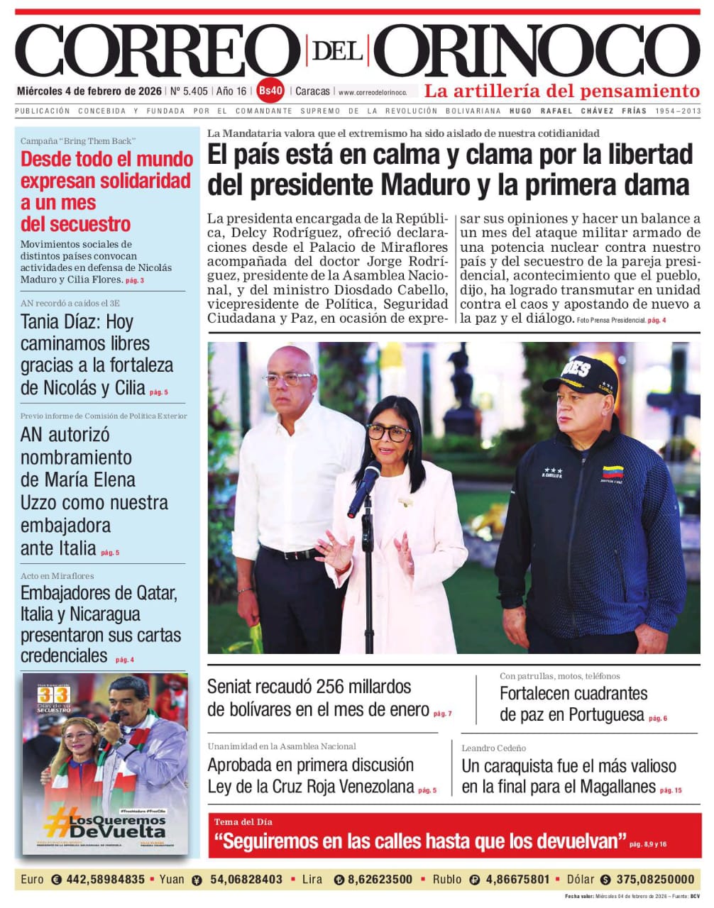 Edición Impresa Correo del Orinoco N° 5.405 Miércoles 4 de febrero de 2026