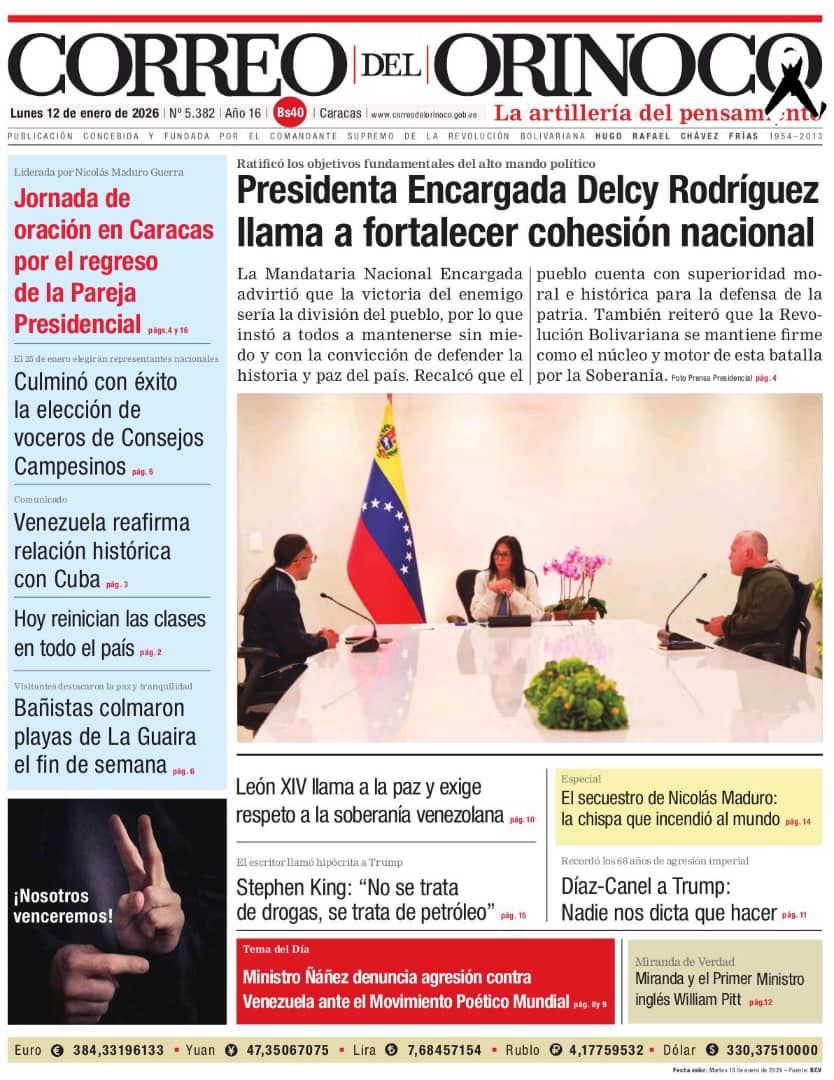 Edición Impresa Correo del Orinoco N° 5.382 Lunes 12 de enero de 2026