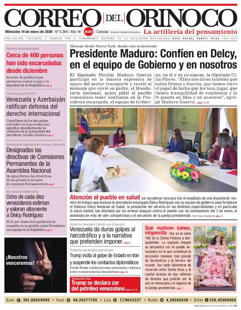Edición Impresa Correo del Orinoco N° 5.384 Miércoles 14 de enero de 2026