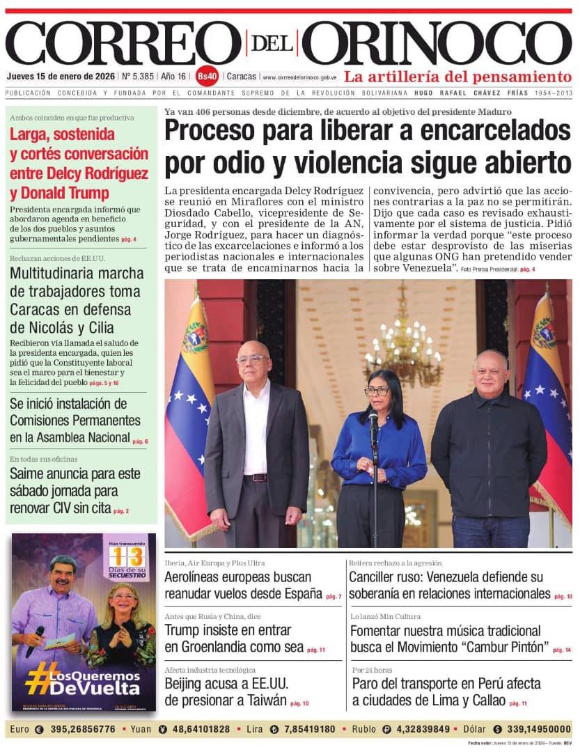 Edición Impresa Correo del Orinoco N° 5.385 Jueves 15 de enero de 2026
