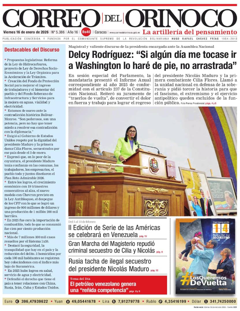 Edición Impresa Correo del Orinoco N° 5.386 Viernes 16 de enero de 2026