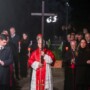 Por la noche, llegó al Coliseo de Roma para presidir su primer Viacrucis como pontífice, en una ceremonia en la que portó la cruz durante las catorce estaciones del recorrido, algo inédito desde hace décadas. El papa procesionó desde el interior del Anfiteatro Flavio hasta la elevación de los Foros Romanos, mientras miles de fieles se congregaron en los alrededores con velas en mano.