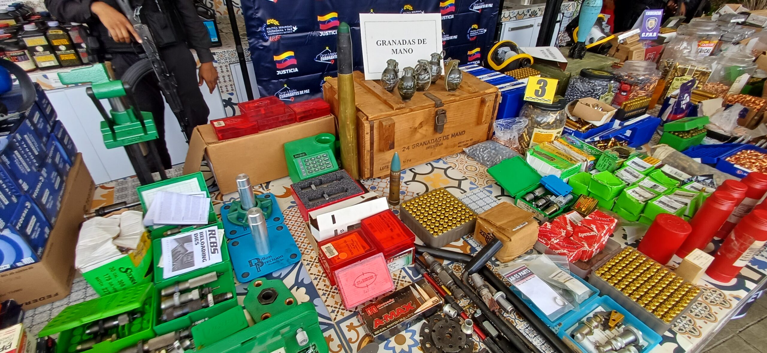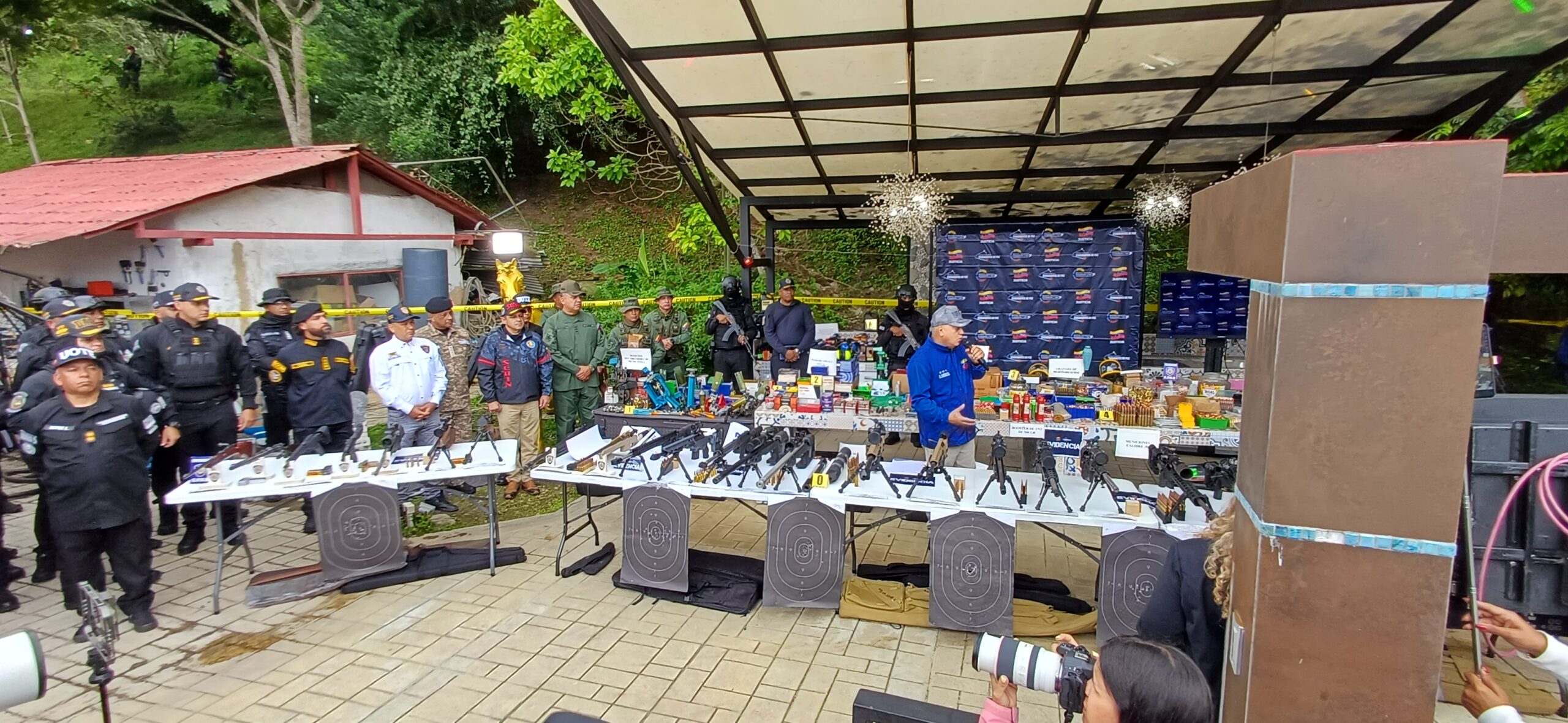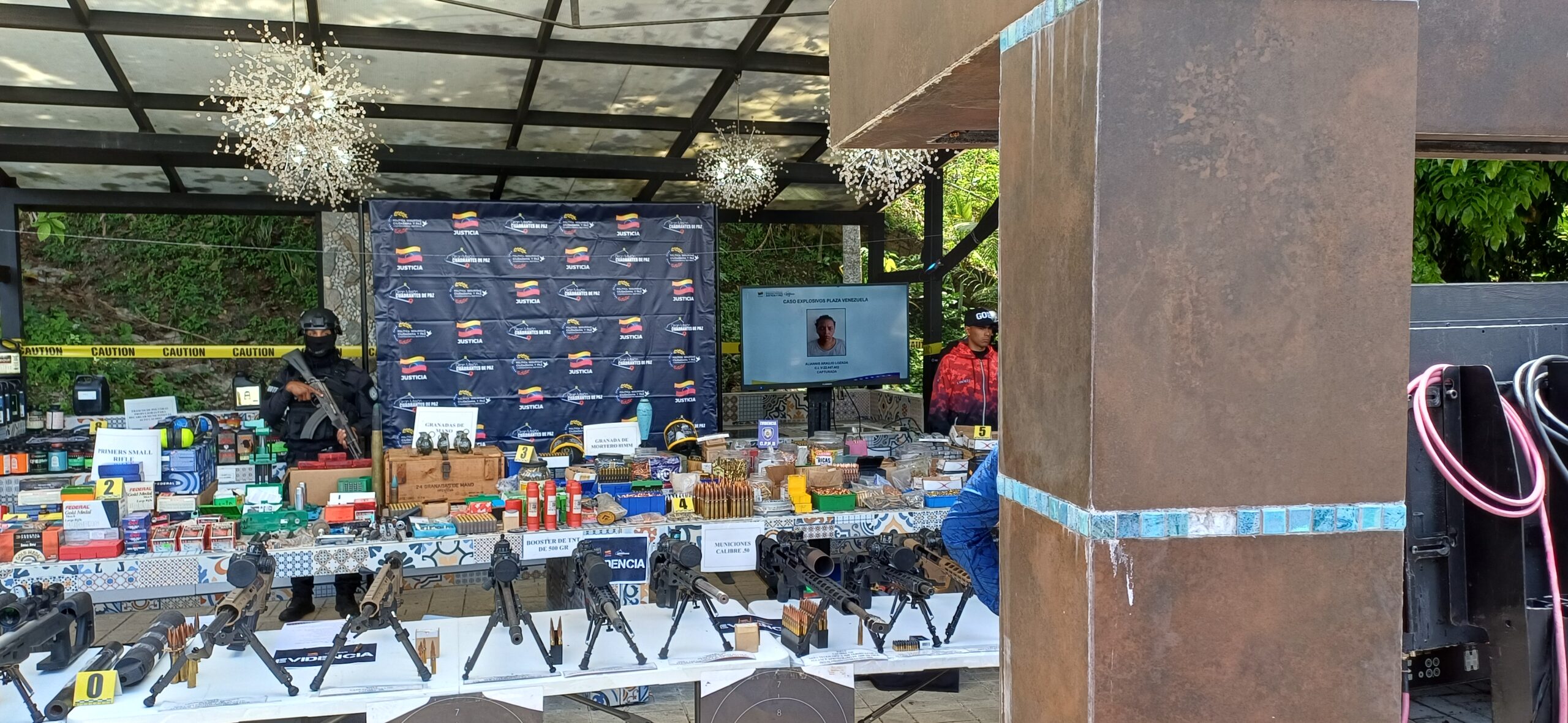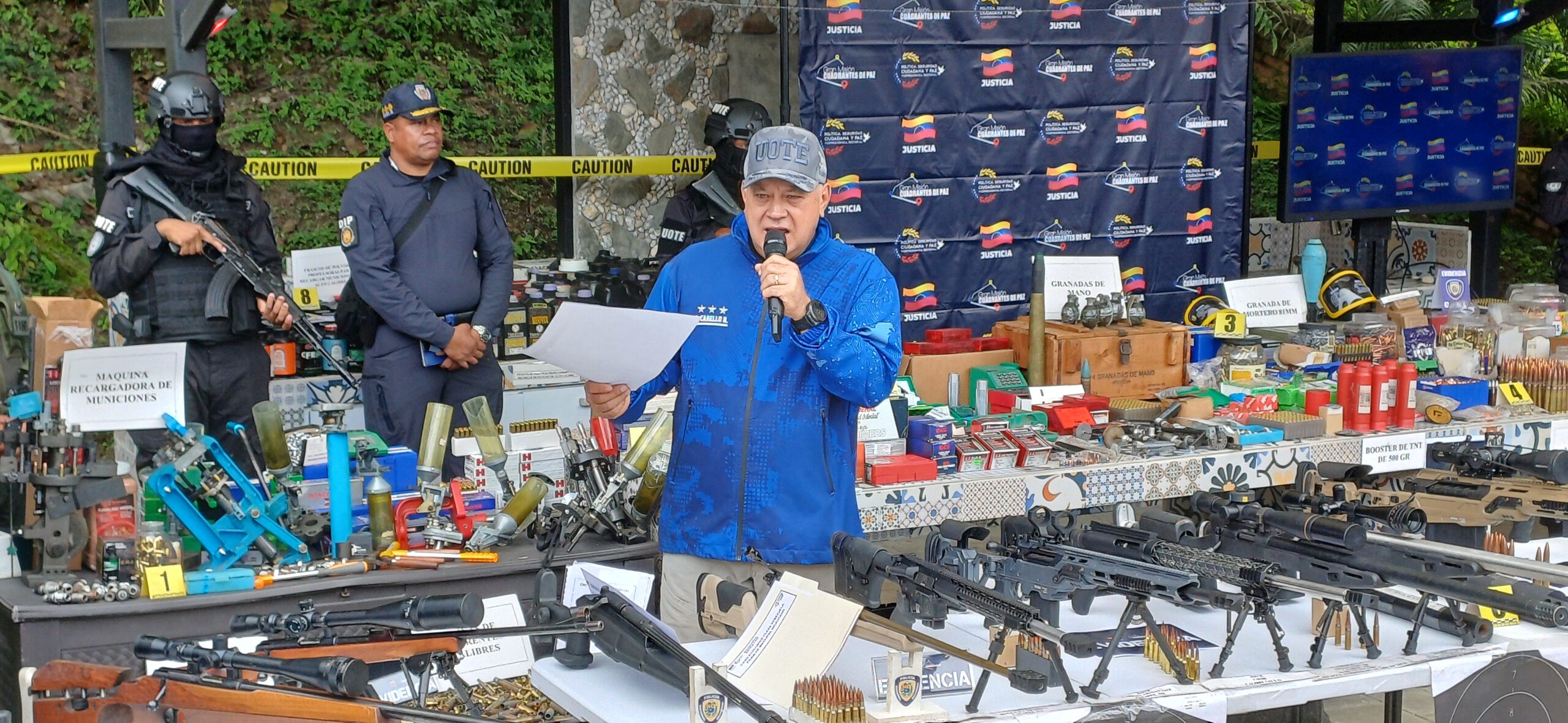 En ese sentido, indicó que este arsenal comprende 23 armas de francotiradores como fusiles .50, supresor de calibres 308, granadas manuales, entre otras armas. «Estos son los planes de la derecha fascista, ¿contra quiénes iba», iban a repetir el escenario del 11 de abril, con francotiradores, ellos colocaron francotiradores, y acusaron al Gobierno nacional de lo que pasó».